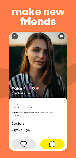 * Engage with Fresh Faces: Chat with diverse and interesting people, broadening your social circle and enriching your online interactions.