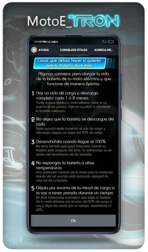 Esta App simula que tu Moto Eléctrica tiene MOTOR FUTURISTA AL ESTILO DE LA AFAMADA PELICULA ”TRON”... en ella se explica todo lo que tienes que hacer, es muy sencillo, la conectas vía Bluetooth con tu Moto (De esta forma se escucha por las bocinas de la moto) y Activas el GPS (UBICACION), de esa forma la App sabe a qué velocidad vas, a mayor velocidad ira emitiendo el sonido de motor acelerando de acuerdo a la velocidad que va, DANDO LA SENSACION DE QUE TU MOTO TIENE MOTOR FUTURISTA, ADEMAS DE BRINDAR MAYOR SEGURIDAD VIAL, YA QUE LOS PEATONES SIEMPRE TE ESCUCHARAN VENIR…