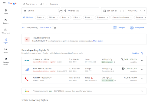 When you use Google Flights to find plane tickets, you can get the best fares for where and when you want to travel. Use Google flights to: