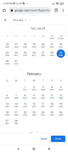 Calendar-based fare view: Google Flights has a simple, intuitive calendar view that shows you the cheapest fare over the next 12 months.