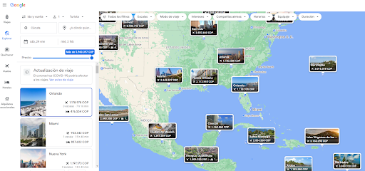 Map-based search: The Google Flights Explore map lets you see the cheapest place to fly from your airport during your selected dates/date range.