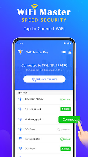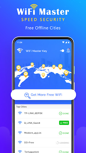 Using WiFi Master, you can find the best Wi-Fi hotspot or password for your current location, or anywhere else in the world. But WiFi Warden also has more features than just searching for Wi-Fi! You can see who is connected to your WiFi and test your internet connection speed. You can also share your own Wi-Fi passwords with the community.