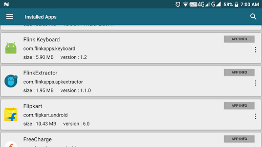 ✔One touch action (Extract app / Share app / Installed app / Uninstalled app / App info / App Details).