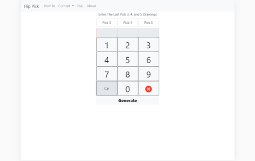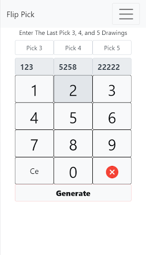 If you would like to increase your odds with playing the pick 3, 4 and 5 games of your state. You might win by using this calculator. All you do is enter the latest draws for the pick 3, 4, and 5 lottery games of your state and you will receive a list of suggested numbers for each of the 3 games to play at your discretion. The numbers that you will receive will vary based on the drawings that you enter. Using this calculator as a strategy may increase your chances of hitting a number boxed or straight since this tool randomizes the draws based on probabilty patterns and generating a sequence of numbers based on your input.