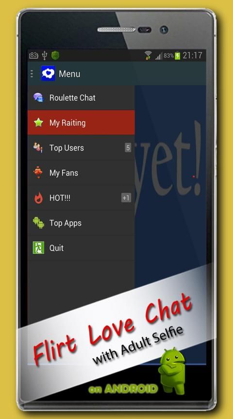 Flirt Sex Chat - is an app for men in which it is possible to communicate with horny girls, real hot girls, each time new, it is absolutely free and without registration! It not computer dating, it is an app Android for the smart phone. Dating advice: Pleasant dialogue with an exchange selfie photo. Hot girls can send adult selfie, be ready to answer adequately! Estimate hot girls and tell it a compliment. You also can send the photo in the course of dialogue. Horny girls it is pleasant. in the end of conversation it will be offered to you to estimate sexy girls. They also will estimate you in the answer. You can always look at the rating, for this purpose enter in the MENU of program Flirt Sex Chat, having pressed the corresponding button. You necessarily will like this program, giving the chance dialogue through adult chat. Write romantic messages, exchange with horny girls the pictures from archive or a photo selfie. Designate your emotions with amusing smiles. Our variant adult chat it: - Romantic dialogue c sexy girls; - Possibility of an exchange of a photo and selfie with hot girls; - Simplicity of using program Flirt Sex Chat; - HD quality; - Your estimation sexy girls; - A top sexy girls with which you communicated; - Your personal fans among horny girls, but it not dating agency; - Only positive emotions from good dialogue; - The information about new interesting apps for Android! Conditions of use Flirt Sex Chat and Dating advice: - The interlocutor in adult chat gets out in a casual order; - Users adult chat create text and a message photo under the responsibility; In Flirt Sex Chat the sent photos and correspondence history do not remain. Soon in the app new plug-ins. Pleasant dialogue!