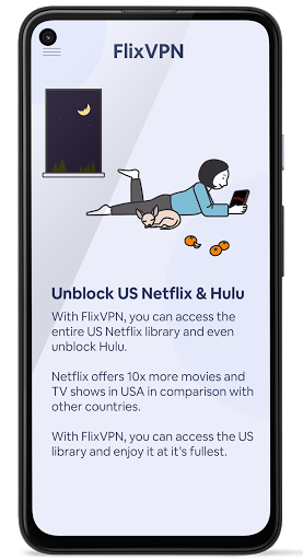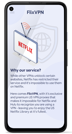 FlixVPN is a Exclusive US Netflix Unblocker VPN that enables US Netflix Library and unblock Netflix, unblock Hulu and other streaming services without proxy error message. Our servers are exclusive and are placed in the US which allows you to connect freely and be UNDETECTABLE from Netflix etc.