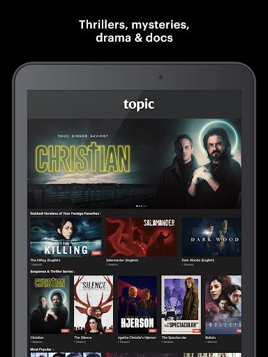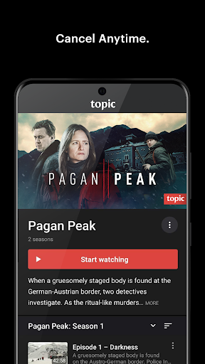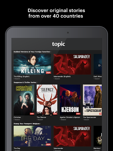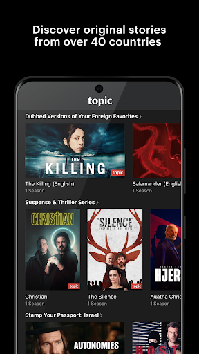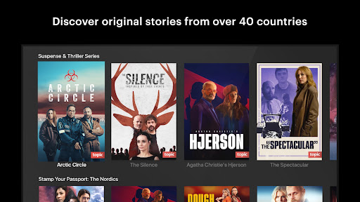 Topic is THE streaming service that introduces groundbreaking crime, thrillers, dramas, and docs from around the world to a North American audience. Taking you to more than 40 countries, our exclusive TV series, award-winning movies, and critically acclaimed documentaries offer a unique window into the unseen.