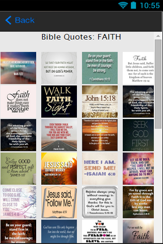 Holy Bible: eQuotes;brings you many great verses from the biblethat will help you to live your lives and cope with problems.Get inspired by a quote every day. These biblequotes can also be set as your phone or tablet wallpapers or backgrounds.