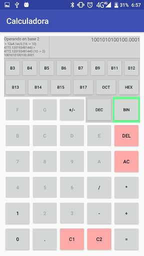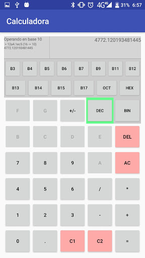 Con ésta herramienta podrás operar en cualquier base y realizar operaciones de conversión entre ellas (binario, octal, hexadecimal, decimal...) desde base 2 hasta base 17, convierte entre cualesquiera de las bases y realiza operaciones elementales en cualquier base. Convierte tanto numero enteros positivos y negativos como números con coma flotante (números con partes fraccionarias). Para base 2 (binario) tiene la opción también de pasarlos a Complemento a 1 y 2.