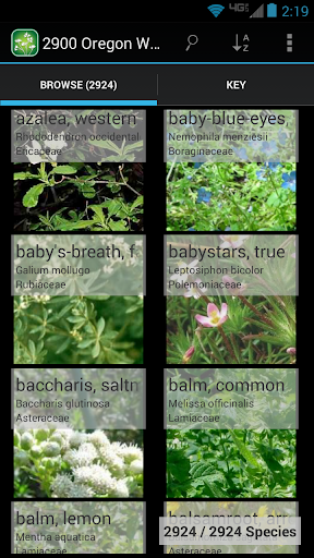 The species list is alphabetized by common or scientific names, or you can do a search by entering a common or scientific name, or even part of a name.
