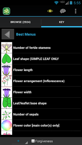 At any point in the process, the app can be asked to list the best menus of characteristics to choose from, based on ease of use, effectiveness, and the list of plant species not yet eliminated from consideration.