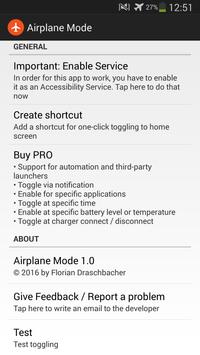 * Toggle airplane mode via a home screen shortcut (One click only)