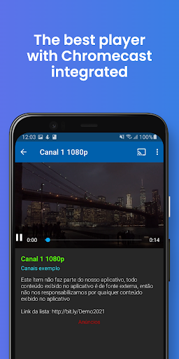 The most complete application for management and display IPTV content loaded through IPTV lists found on the internet, we do not provide any content,all contents are displayed through IPTV lists are responsibility its creators , we aren't owner and have no list in this Application .