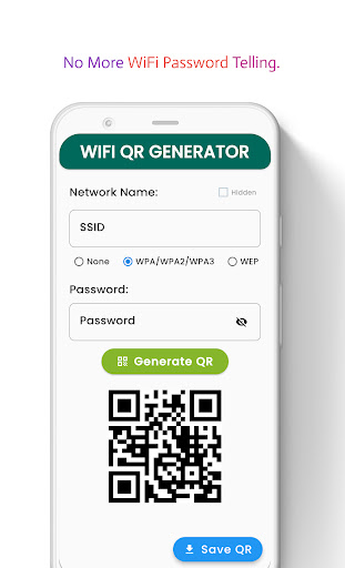 Introducing the ultimate WiFi-sharing solution! 🏆 With our app, you can easily create a QR code for your WiFi network and share it with anyone, allowing them to connect to your network in seconds. No more struggling to remember passwords or manually entering them, our app makes WiFi sharing simple and seamless. 🎉