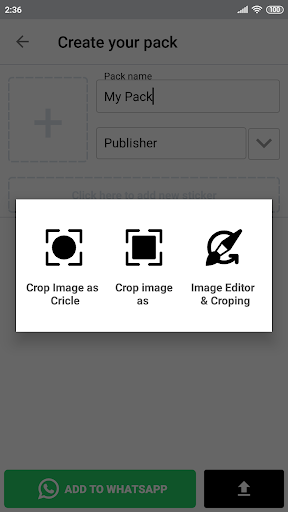 2- Click any sticker pack you want to see or click the button to add your own stickers.