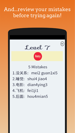 • Type the respective pinyin for the characters in each level