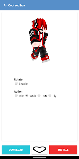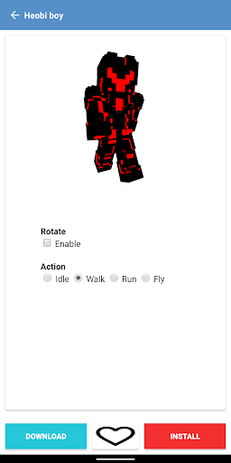 It has a very simple interface that makes it easy for anyone to use. Select a skin from the catalog and press the download button to save your skin to memory or select the install button to directly install the skin in the game. Use boy skins to play minecraft, then you become the most interesting and popular player on the server.