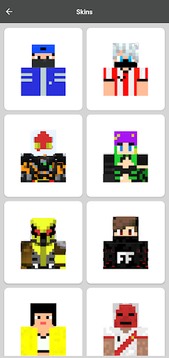 ff skinpack for minecraft pocket edition has a simple interface. How to install ff skins for minecraft is very easy, choose a skin pack from the catalog. 3D preview before download or install. With just one touch, press the download button to save the skin to memory, or install it to use it directly into the game. Show off ff skin to friends on mcpe server.