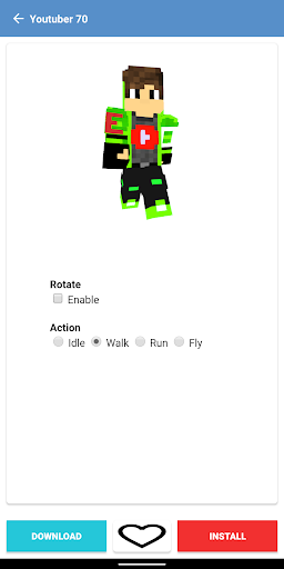 Youtuber Skins for Minecraft Pocket Edition with high quality is an application that contains skins of Youtuber characters around the world. If you are a fan of youtubers, then this skin for minecraft is a must for you to collect. You can download all youtuber skins for mcpe and can be installed directly into the game.