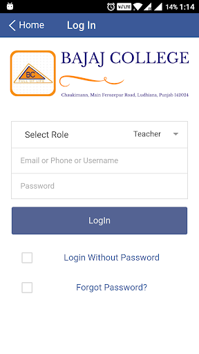 The official College app of Bajaj College, Ludhiana. This app allows College to take attendance (offline as well), send out circulars, send bulk SMS, create and publish grade/marks/report cards, create the schedule of classes and exams, print hall tickets for exams, print marks/grade/report cards.