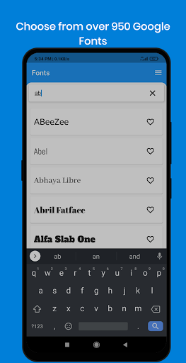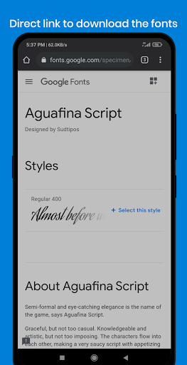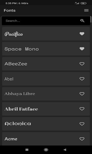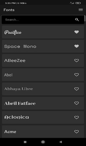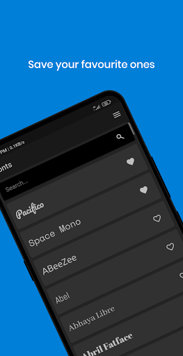 In this app, fonts do not need to be stored in your memory. Instead, they can be fetched once via http at runtime from 'fonts.google.com', and cached in the app's file system. This feature makes the app light weight and flexible.