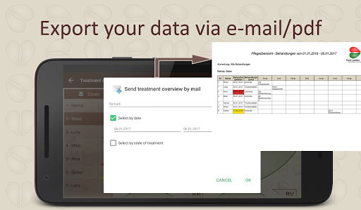 Besides, an “export-function” is available to get an overview of the hoof treatments and get the opportunity to send the overview via e-mail. Farmers have different output options, like an overview of the hoof treatments sorted by date or an overview of the hoof treatments sorted by status of treatment of the cows.