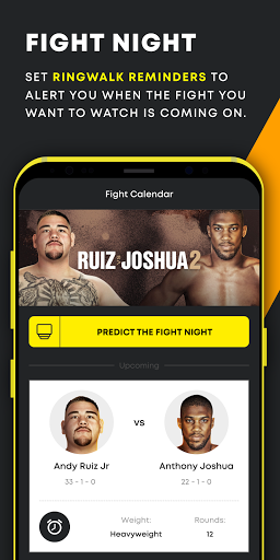 As well as news and the scorecard, we also offer Ring Walk Reminders to alert users to when a fight is about to commence, just select the alert for the fight you want to watch and we’ll send you an alert as they come walking out.