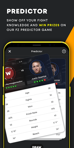 This is the first version of our new app, and we have plans to bring out much more features in the coming months including pre-fight predictors, exclusive content and offers and crowd sourced rankings.