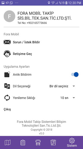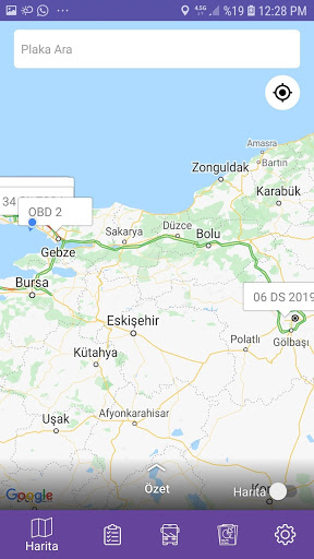 Vehicle position, speed, contact, mileage can be displayed on the map, vehicle history report can be obtained without using the computer. You can be alerted to violations of rules that cause excessive fuel consumption, such as overspeed, idle standby at idle, non-working hours, route and forbidden zone violations.