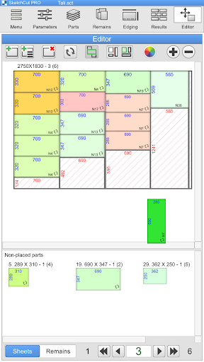 ● Automatically cut sheets and remnants in accordance with selected parameters