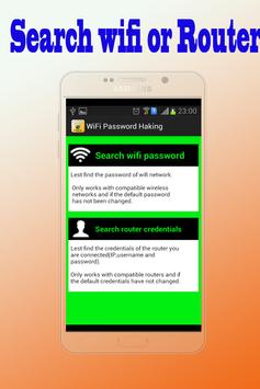 - Wifi Password Hacker: It is a prank function that simulates to hack any wifi network. It scans the networks around you and you choose one Wifi to hack