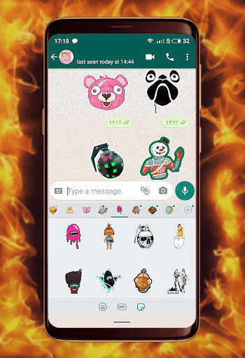 Communication in your favorite messenger has become pleasant and convenient. Fortnite stickers for whatsapp skins help to quickly convey your emotions at a distance. You can add stickers with one click, or you can save them to your favorites and share them with a friend. The app in one click will add battle royale stickers for whatsapp to your smartphone.