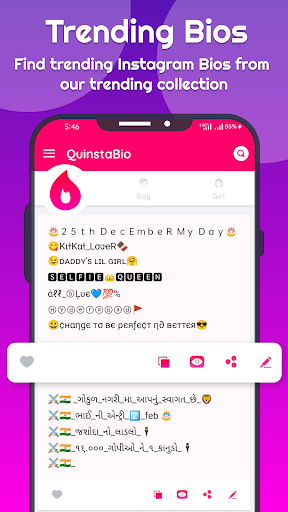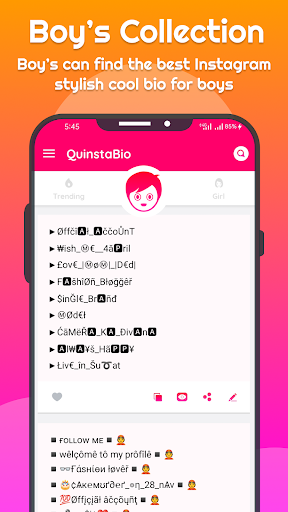 - Filter by Gender: Read only what you need. Gender-based filtering helps a boy find an attitude Instagram bio, and a girl can easily find some cute girly Instagram Bio.