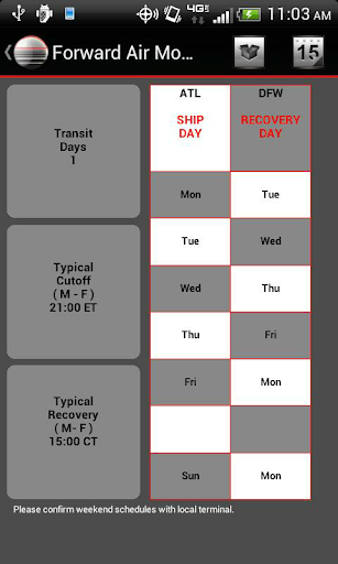 Forward Air® Mobile™ provides quick access to the necessary tools used to track the status of shipments, obtain a price quote, view transit schedules, see location information and contact support.