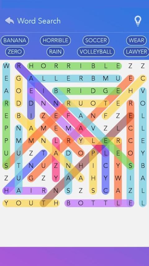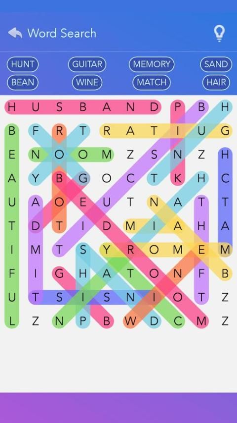 In Word Search game, you will play from easy 6 x 6 games up to bigger challenges as you advance! Free Word Search! Find words up, down, left, right, diagonal, and backwards!