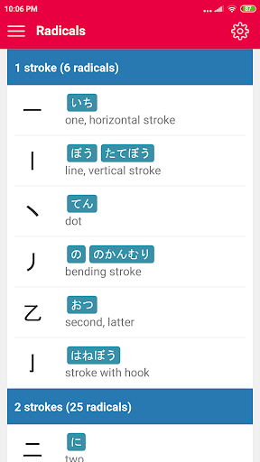 - Radicals: concentrate full radicals of all kanji, help you to learn and remember kanji easier.