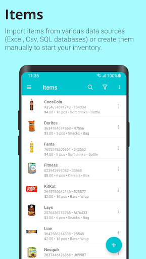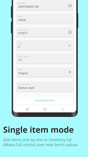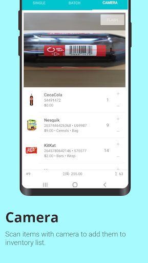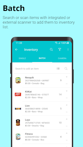 Application enables item barcode input via keyboard, Bluetooth barcode scanner, integrated scanner, Zebra DataWedge integration or integrated camera.