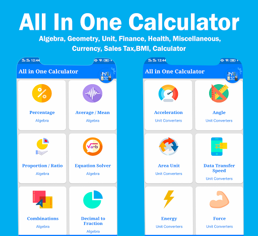 This App is perfect for students as it has Simple Calculator, Scientific Calculator, lots of Conversions, Algebra Calculators, Geometry Calculators, Math Calculators, Fraction Calculator, Physics Calculators, Statistics Calculators and many others which will make your day to day life easy.