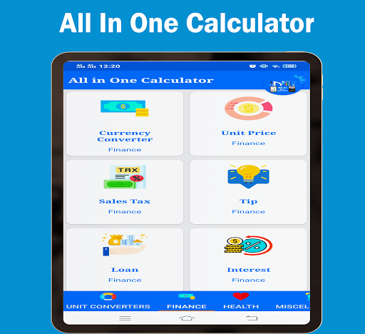 • Algebra, Geometry, Unit Converters, Finance, Health & Misc