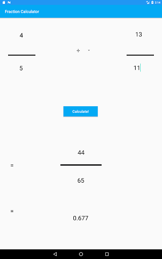 Fraction Calculator allows you to input two fractions and add, subtract, multiply, or divide them. For your convenience, the result of the calculation is always displayed as a simplified fraction. The result is also displayed as a decimal number.