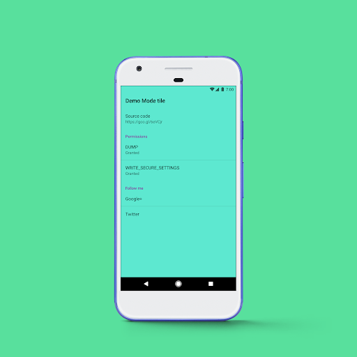 It's a very simple tool presented as a Quick Tile to simplify the process of setting up and activating Demo Mode. It's already pre-configured out of the box with perfect 7:00 clock, full WiFi, full signal and full battery icons for stunning clutter-free screenshots.