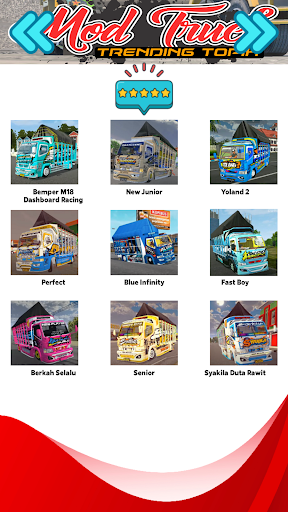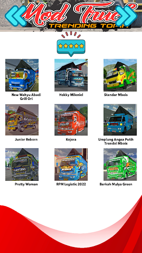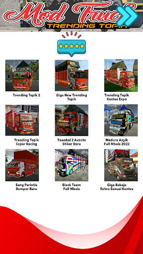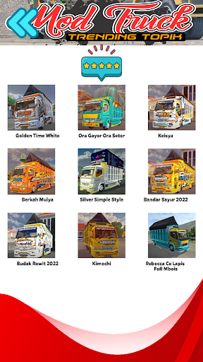 Pada list terakhir tersedia; mod truck bussid terbaru kejora, mod truck umplung 2022 angsa putih trondol mbois, mod truck pretty woman, mod bussid update 2022 yoland 2, mod truck 2022 terbaru berkah selalu, mod truck terbaru 2022 senior, mod truck canter terbaru 2022 blue infinity, mod bussid 2022 new bandar sayur, mod truck canter 2022 budak rawit, mod truck keren 2022 kimochi, serta hadir mod truck rebecca lapis full mbois.
