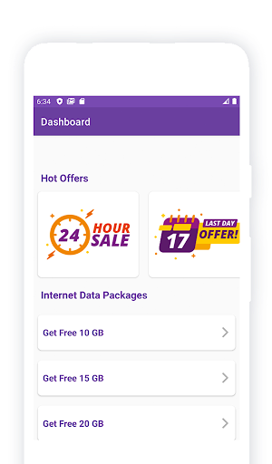 After going through few steps, you reach at dashboard where you can see some options like Free Internet, Free Minutes, Free SMS. You need to select one option from given options to avail the selected option.