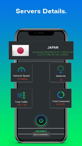 This is a free VPN app, easy to use and for an unlimited time. You don't need to pay for any services provide by this app. It is simple to use as just one click can connect you to remote servers. You also need one click to stop and start the VPN app.