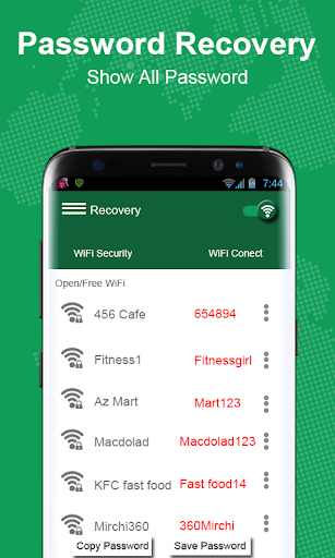 WIFI Password Recovery NetworkAnalyzer Shows the Wi-Fi channels around you. It also Helps you to find a less crowded channel for your wifi router.It canhelps Optimize your WiFi network by examining surrounding WI-FI networks, measuring their signal strength and identifying crowded channels.Wifi key recovery provides useful information about wireless signals around you. WiFiAnalyzer supports 2.4Ghz and 5Ghz. This app increase the network performance via analyzing and monitoring your wifi network!