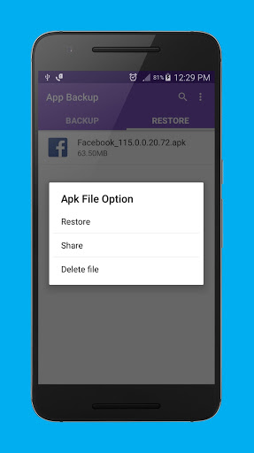 Backup your entire installed application Restore them from the restore tab anytime Share the application with your gang