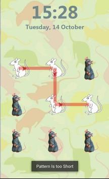 Every one love animals, and rat is a animal who take more love then other animal. Are you a rat lover or like rat, then you have a good news we bring a unique mobile phone screen lock application in with you draw a pattern using touch of you mobile using rat in free. It is very simple to use . Just install it, turn on lock an select your desired pattern. for more graphical details please give a look on screenshots.