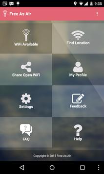 - Share Free As Air Wi-Fi app with all of your Facebook, Whatsapp, Hike, Viber, and Twitter buddies and HELP expand our network