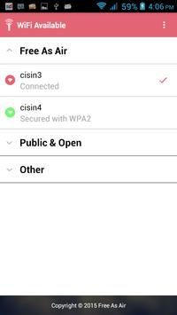 3. Done! You are now connected to Free As Air Wi-Fi