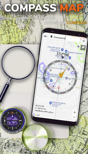 & free compass app is used in many outdoor activities: traveling, camping, hiking, hill climbing, walking, feng shui,...